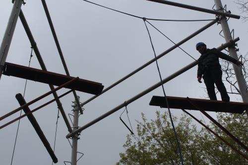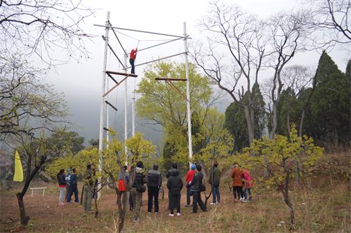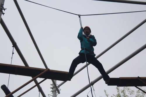 活動伊始,在張教練、王教練的指導下大家進行了破冰熱身、團隊組建和團隊展示。隨后,正式開始今天的拓展訓練。拓展項目有“高空跨越”、“信任背摔”和“挑戰(zhàn)150”等。