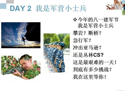 1、超越恐懼 2、培養(yǎng)勇敢 3、團隊精神 |