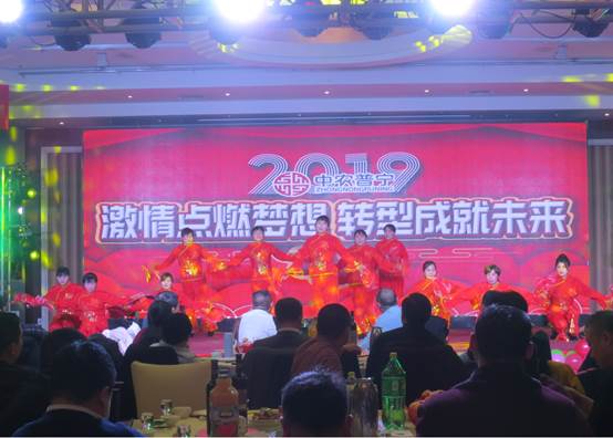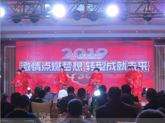 公司領導、公司部分友好人士、全體員工120余人參加了晚會。晚會以公司回顧2018《激情點燃夢想 轉型成就未來》拉開了序幕。