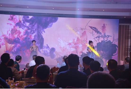 臺下一桌桌豐盛的晚餐、彼此舉杯同賀、相互祝愿。公司領導與員工親情互動、歌聲、掌聲、歡呼聲一直在晚會現(xiàn)場蕩漾。