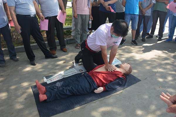 會議首先進行的是由安全專家王偉國講解應急演練有關(guān)事項,并對各企業(yè)提供的演練方案進行點評,隨后進行心肺復蘇操作演示,之后大家練習。