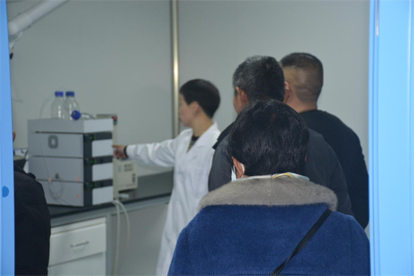 接下來歐美華團(tuán)隊(duì)參觀了公司廠區(qū)、新GMP車間、化驗(yàn)室和研發(fā)中心。公司質(zhì)控部經(jīng)理庚承芳向大家介紹了產(chǎn)品生產(chǎn)的各個(gè)環(huán)節(jié),從設(shè)備功能、生產(chǎn)工藝、環(huán)境要求等多方面向大家進(jìn)行了詳細(xì)的講解。在新GMP車間,歐美華團(tuán)隊(duì)現(xiàn)場(chǎng)觀摩了產(chǎn)品的生產(chǎn)過程,對(duì)潔凈的車間環(huán)境、高效的生產(chǎn)過程、嚴(yán)格的質(zhì)量把控等印象深刻、連連稱贊。在化驗(yàn)室和研發(fā)中心,歐美華團(tuán)隊(duì)對(duì)公司雄厚的的技術(shù)研發(fā)力量和先進(jìn)的實(shí)驗(yàn)設(shè)備贊嘆不已。